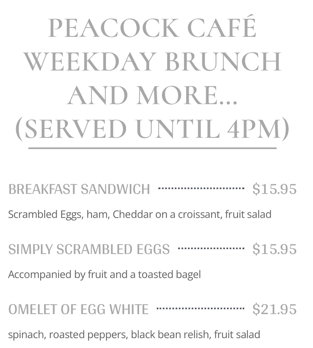 Welcome to Peacock Café, a charming culinary gem nestled in the heart of Georgetown, Washington, DC. Known for its inviting atmosphere and friendly service, this café offers a delightful menu perfect for any meal of the day.